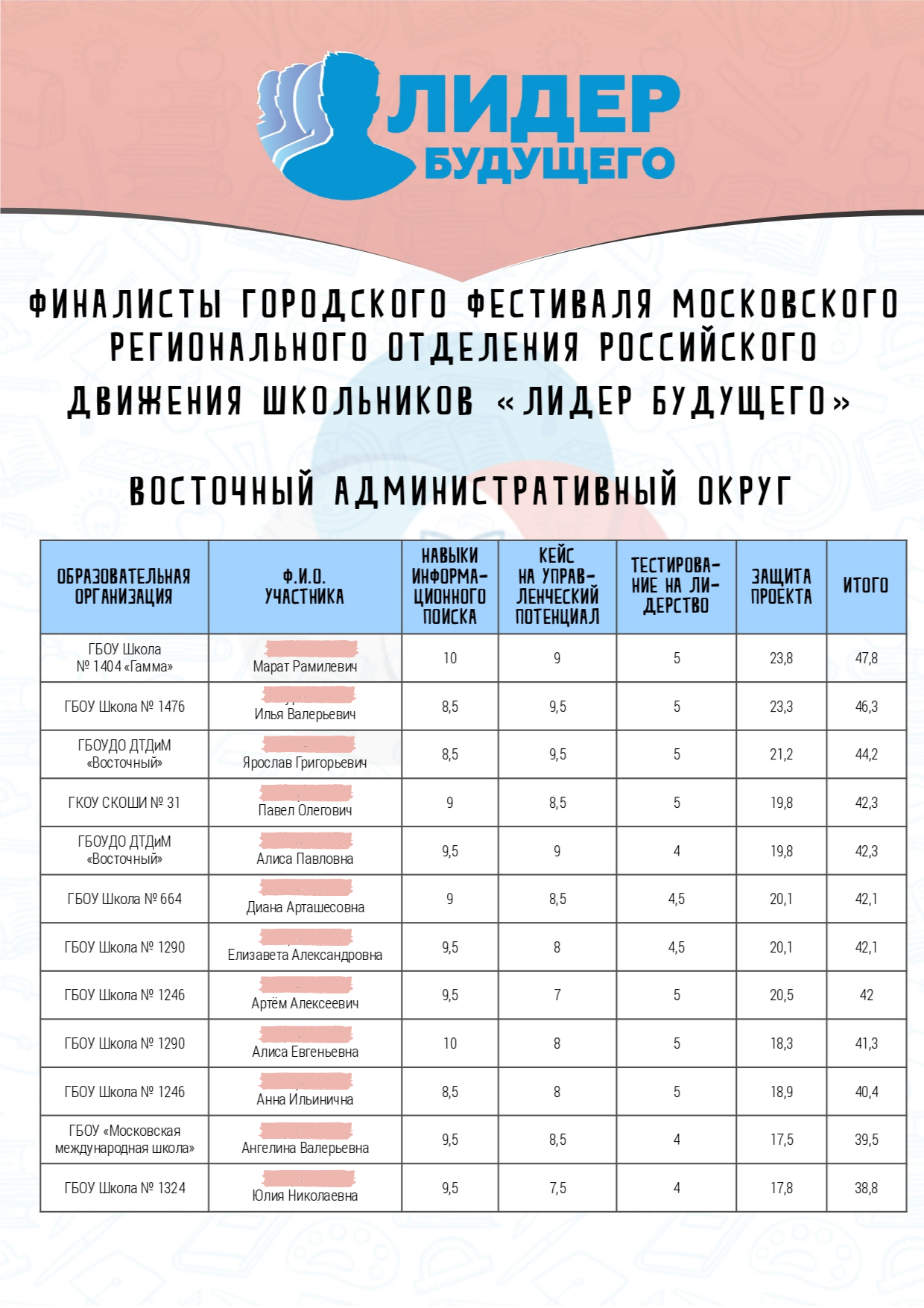 А мы поздравляем с выходом в первый городской финал «Лидера будущего» 23 конкурсанта из Восточного административного округа Москвы!